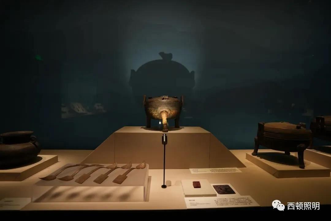时间使得文物褪去了原有的色彩与光泽,Mayalit·玛雅秉承“安全”、“还原”、“舒适”的照明理念,选用高显色的灯具、合适的色温,多角度布光,充分展示青铜器的立面效果及细节内容,让人惊叹古代人们的智慧及悠久的文明。