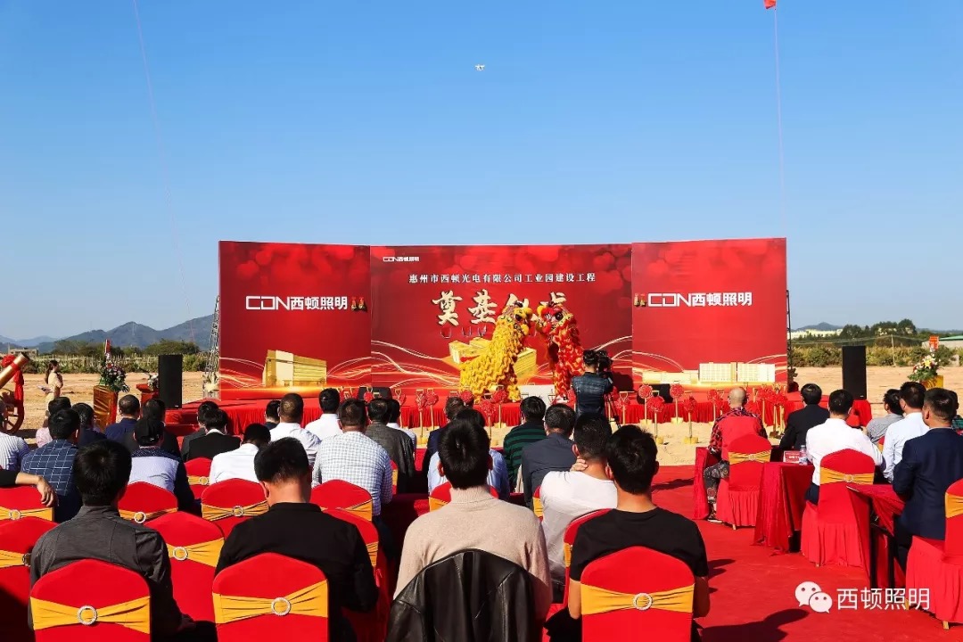 2020年1月8日,惠州市西顿光电有限公司工业园奠基仪式,在广东省惠州市水口民营工业区南区隆重举行。惠城区政府各级领导、四川美术学院、清华大学、TOP10经销商代表、西顿照明董事会成员及EMT高管团队代表、子公司成员代表等齐聚于此,共同见证这一重要时刻。