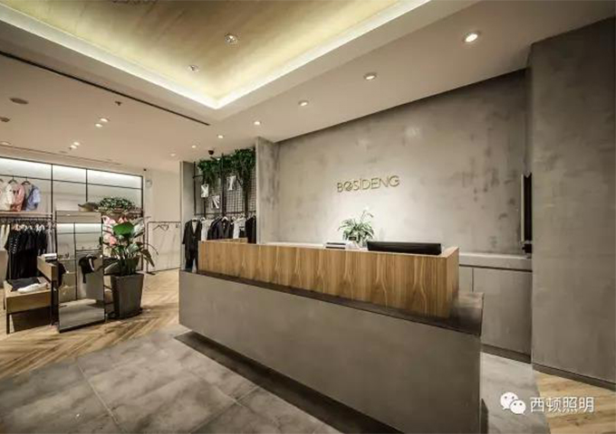 本案例所有照明产品均为BOSIDENG订制产品,店铺照明推荐使用西顿“超白光”系列和CEL6267导轨射灯。