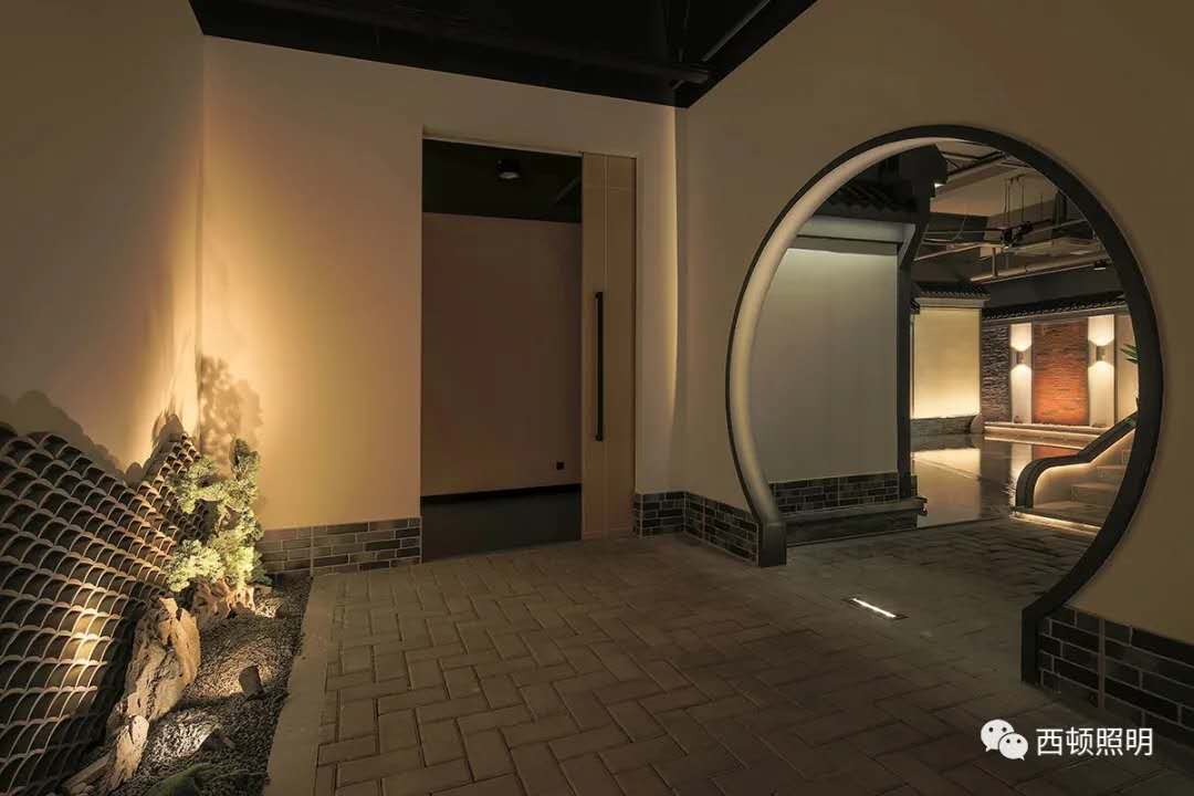 室外照明展厅建筑面积为1000平方,将中式园林、徽派建筑与工业装饰相融合,结合室外照明产品与灯光技术、艺术的融合,实现与客户实景互动体验场景。