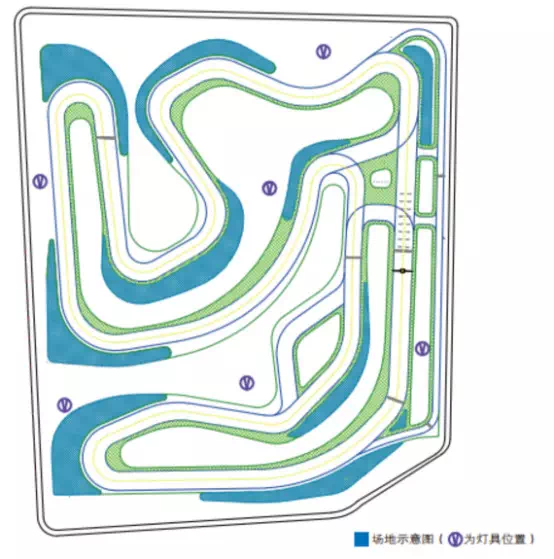 经过对甲方实际运营需求进行分析后,与赛道设计师共同商定此卡丁车赛道平均照度要求为不低于150lx,赛道照度均匀度大于0.4,眩光值按照道路照明技术标准执行。